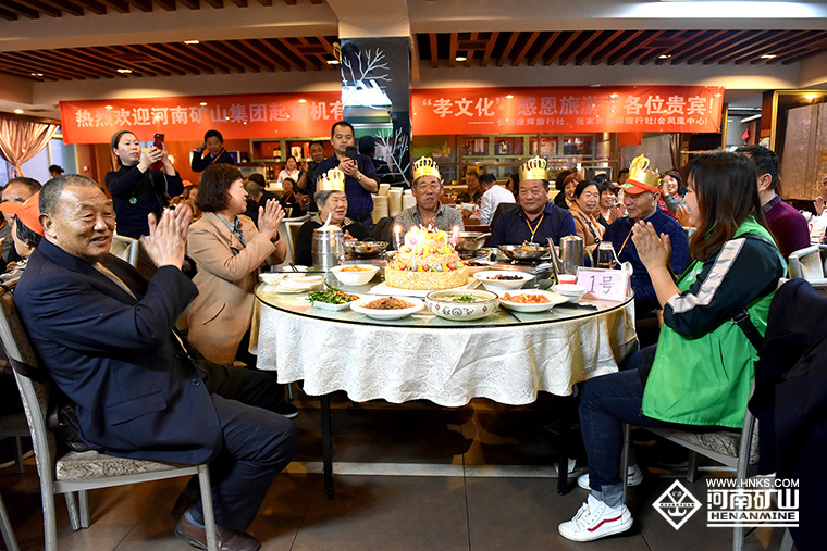今天,恰好有四位老人生日,公司特意安排了生日蛋糕和長壽面。
