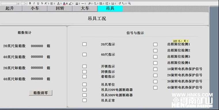 另外該起重機(jī)采用了先進(jìn)的自動(dòng)控制系統(tǒng),實(shí)現(xiàn)了無人化操作功能,如自動(dòng)尋箱、自動(dòng)定位、遠(yuǎn)程監(jiān)控、數(shù)據(jù)實(shí)時(shí)傳輸?shù)?。起重機(jī)還配備有專用“黑匣子”,對(duì)各個(gè)部位故障快速診斷,能以直觀的方式讓操作者了解起重機(jī)的“健康情況”。為客戶管理貨場(chǎng)提供了解決方案和人性化的操作體驗(yàn),在幫助屏幕上附帶了一個(gè)專家系統(tǒng),使得整機(jī)反饋能縮小到具體的元件、聯(lián)鎖裝置及開關(guān),并為這一系列數(shù)據(jù)建立了一個(gè)數(shù)據(jù)庫,為解決問題提供幫助。